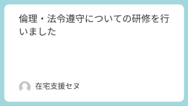 在宅支援セヌ 新着情報 倫理・法令遵守についての研修を行いました この投稿をInstagramで見る株式会社セヌー(@zaitakushien_senu)がシェアした投稿 2025.11.17 在宅支援セヌ 新着情報