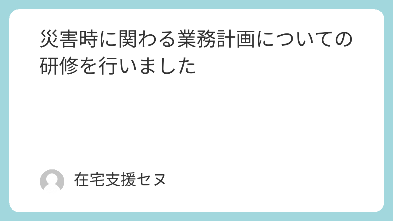 災害時に関わる業務計画についての研修を行いました 在宅支援セヌ 新着情報 2025.10.23 この投稿をInstagramで見る 株式会社セヌー(@zaitakushien_senu)がシェアした投稿